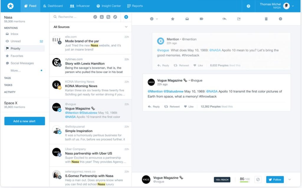 - Mention : cet outil pour maîtriser son e-réputation scrute de fond en comble plusieurs millions, voire milliards, de sources pour trouver les mentions de votre entreprise sur la toile. Elle crée des alertes spécifiques et vous propose de visualiser les pages vous concernant avec des statistiques détaillées.